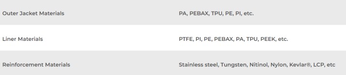ชั้นใน(ซับ): ชั้นในสัมผัสโดยตรงกับของเหลว และจำเป็นต้องมีความต้านทานต่อตัวกลางและคุณสมบัติการปิดผนึกที่ดี เพื่อให้แน่ใจว่าของเหลวจะไม่ปนเปื้อนระหว่างการส่งผ่าน วัสดุชั้นในทั่วไป ได้แก่ PTFE (โพลีเตตระฟลูออโรเอทิลีน), FEP (ฟลูออริเนตเอทิลีนโพรพิลีน), PEBAX (โพลีเอเทอร์อิไมด์), TPU (เทอร์โมพลาสติกโพลียูรีเทน), PA (โพลีเอไมด์) และ PE (โพลีเอทิลีน)
